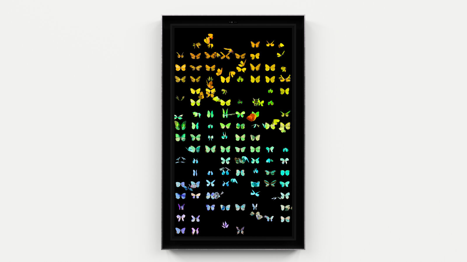 Using cutting-edge AI-generation techniques, Harris realises his digital lepidopterist dream of bringing new butterfly species to life. The result is an intriguing evolution: a rabble of virtual butterfly specimens – each infinitely unique, impossibly beautiful, yet entirely plausible.