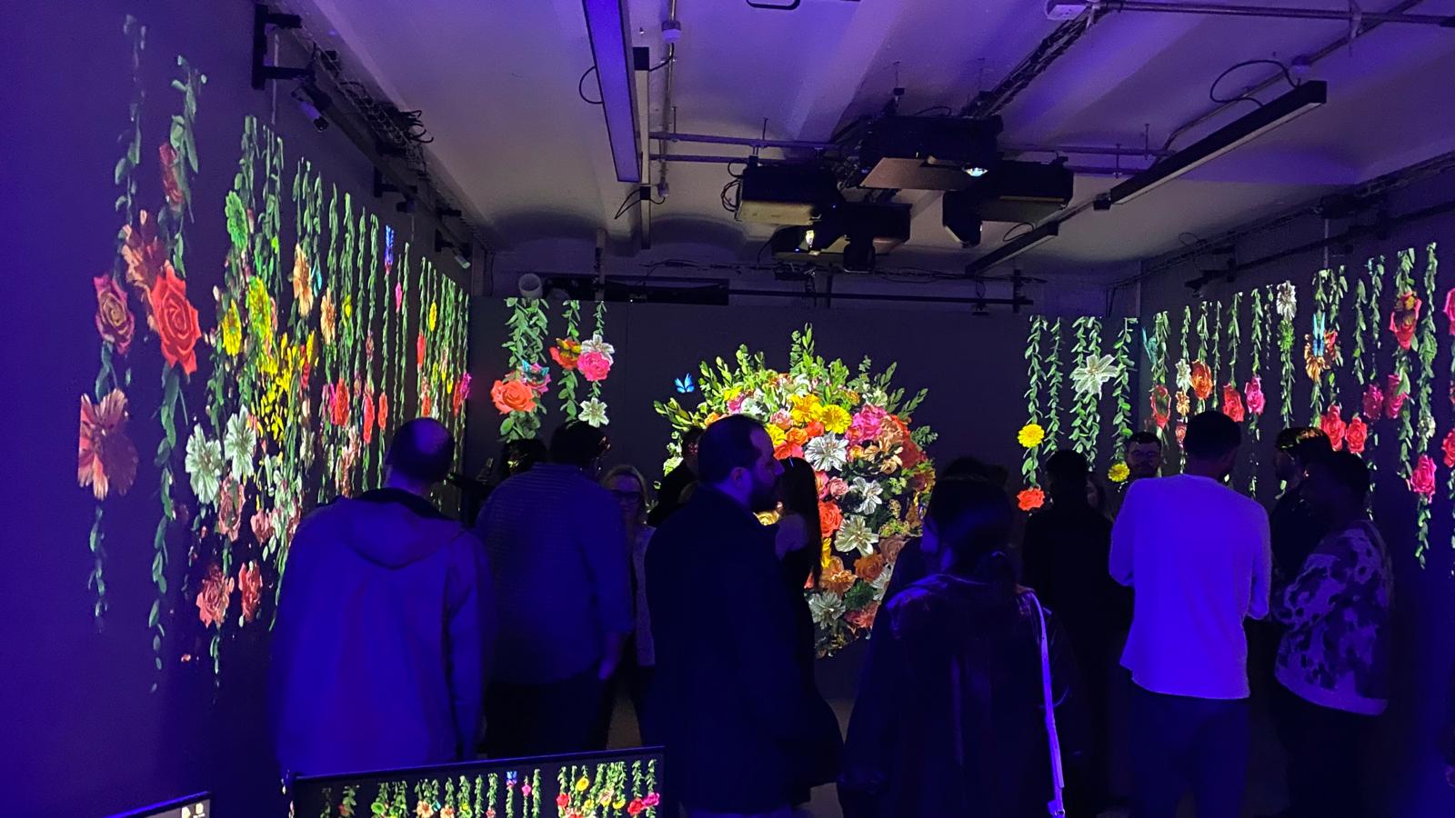 Sounds of Liberty brought all of this to life in the room. Its AI-synthesised voices — deliberately flat and affectless, borrowing the neutral register of broadcast news — read live headlines against a background of scrolling long-form journalism. The tension between the transient beauty of the butterfly and the relentlessness of the twenty-four-hour news cycle gave guests a direct, real-time encounter with how technology can serve a conceptual proposition rather than simply demonstrate a capability.